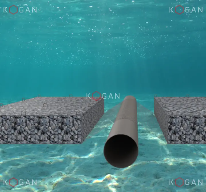 Габионы для подводной укладки с закладными деталями получили широкое распространение для работ связанных с дноукреплением, формировании габионных якорей подводных трубопроводов, защиты около причальных сооружений, а также для укладки в русла рек на большую глубину для защиты от размыва дна и прибрежной зоны.