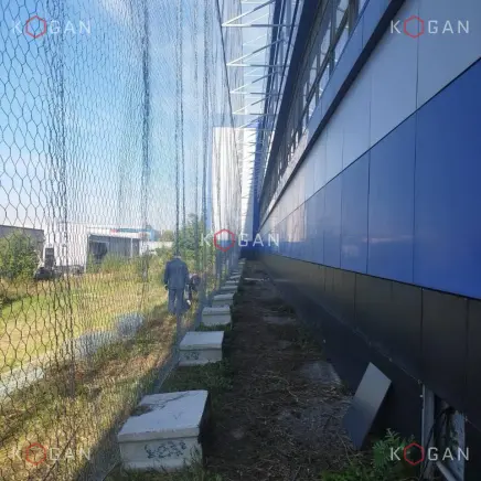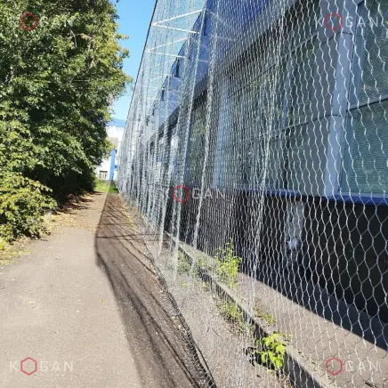 Антидронное заграждение на объекте представляет собой большое полотно, сформированное из проволочной оцинкованной сетки с диаметром проволоки 2,2 мм и шестиугольными ячейками 60×80 мм. Продукцию для заказчика мы поставили в рулонах шириной 2 метра и длиной 50 метров. Сетка изготовлена в соответствии с требованиями ГОСТ Р 51285-99 и оптимально подходит для укрытия больших промышленных зданий.