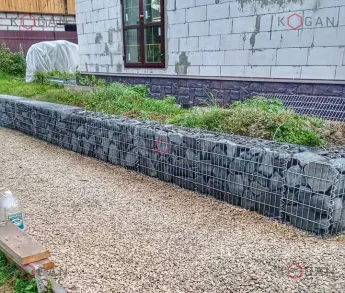 Требовалось установить подпорную стенку и бордюр на дачном участке, чтобы визуально отделить зоны с декоративной растительностью. Мы изготовили десять габионов из сварных панелей с ячейкой 50×50 мм; диаметр проволоки – 3,8 мм. Все габионы предоставлены разных размеров, что позволило учесть пожелания по геометрии конструкций.
