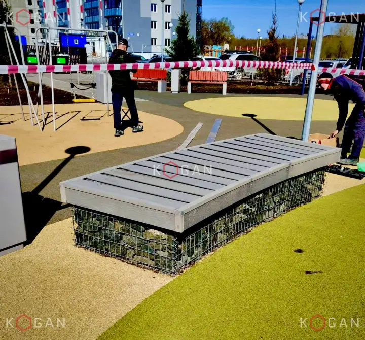 Компания «Ваш Сад» в очередной раз выбрала нашу продукцию, чтобы сделать один из районов Кемерово чуть более уютным. Из сварных габионов Коган специалисты организации смонтировали лавочки на дворовой детской площадке.