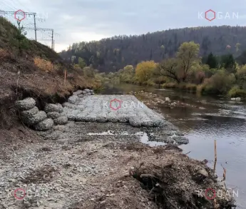 Для выполнения задачи строителям понадобилось порядка 3000 кубометров габионных конструкций. Формировали откосы, обустроили лотки для воды и трубные оголовки.