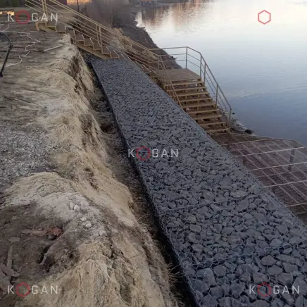 Проект берегоукрепления с применением габионов из сетки двойного кручения строители реализовали в коттеджном посёлке Белаго Раменского района. Берег реки Москвы там активно разрушался, что создавало угрозу для прибрежной территории и инфраструктуры.