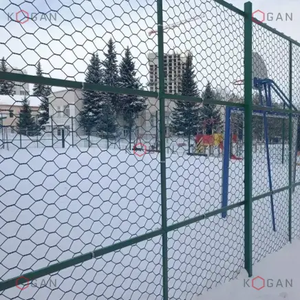 Наша габионная сетка с шестиугольными ячейками применена в качестве ограждения спортивной площадки в одном из жилых комплексов Уфы. Заказчик — управляющая компания, которая занимается содержанием территории.