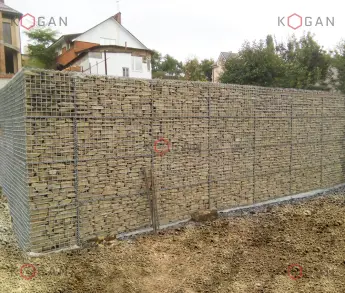 Для объекта мы изготовили сварные габионы из панелей с ячейкой 50×100, диаметр проволоки – 4 мм. Из габионов заказчики смонтировали бордюр длиной 9 метров. К существующему цоколю конструкция прикреплена анкерами.