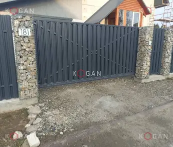 Заказчица планировала облицевать старый цоколь габионами – закрыть ими обветшалый бетон. Пергон из габионов подразумевался как часть ограждения, примыкающая к калитке.