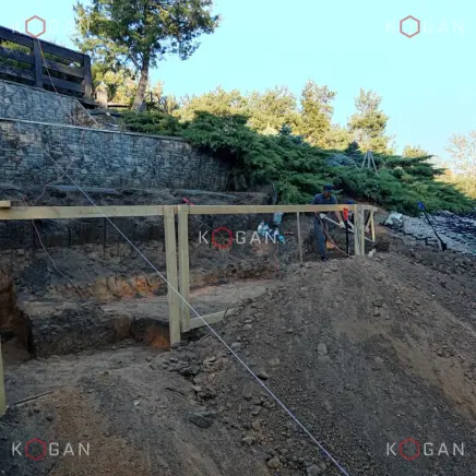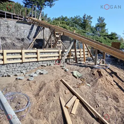В 2025 году закончена первая часть работ. Впереди — обрамление блоков ФБС и монтаж капитальной лестницы вместо временной. В новом году укреплённый склон станет полноценной, эстетичной и удобной частью усадебной территории.