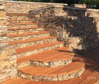 Габионы Коган послужили материалом для возведения высокой подпорной стенки на оползнеопасном участке в Медеуском районе Алматы. Строительные работы выполняла компания «Заман Курылыс». Высота сооружения составила 6 метров, всего строители уложили 1991 кубометр камня.