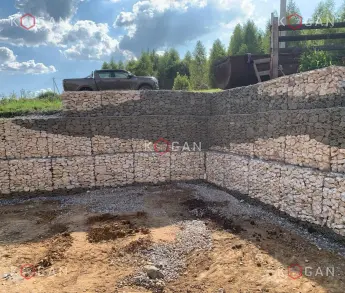 В очередной раз габионная продукция помогла «обуздать» небольшой, но заметный перепад высот. Чтобы соорудить подпорную стенку, заказчик из Республики Башкортостан использовал оцинкованную сетку двойного кручения с шестиугольными ячейками 80×100 и диаметром проволоки 2,2 мм, изготовленную на нашем заводе.