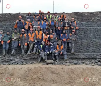 Наша компания выполнила поставку матрацно-тюфячных и коробчатых габионов на объект. Из них строители возвели 20-метровую подпорную стенку с проёмами под стволы деревьев и закладными под уличные светильники. Данная работа заняла 10 дней.