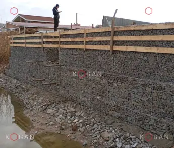 Строительная бригада возвела две новые стенки из Габионов Коган ™. Длина первой – 51 метр, второй – 15 метров. Сборку габионов выполняли на участке с применением стальных спиралей. Наполняли конструкции вручную – получилась аккуратная кладка с минимумом пустот. Дополнительно сделали ступени из сварных карт.