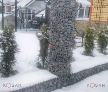 Мы изготовили сварные габионы из панелей с двумя размерами ячеек 50×100 и 50×200 мм. Заказчик прислушался к нашим рекомендациям относительно строительства стены высотой более двух метров, поэтому выбрал изделия из проволоки 4,8 мм в диаметре. Если бы применялась проволока диаметром 4 мм, нижние ряды пришлось бы укреплять множеством внутренних стяжек для предотвращения распирания габиона.
