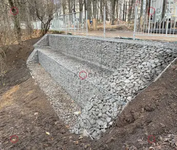 Поставку габионов в Калужскую область выполнил наш завод. Строители установили порядка 30 кубометров коробчатых габионов и 200 кв. м матрасных. Склон и забор спасены. Территория завода приобрела более благоустроенный вид.