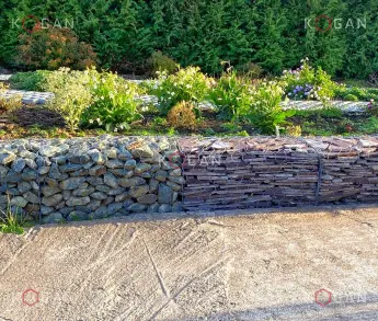 Строительная компания порекомендовала клиенту монтировать подпорную стенку из габионов коробчатого типа. Такой конструктив был предложен на основе информации от самого заказчика: плана, фотографий и видеосъёмки участка.