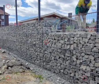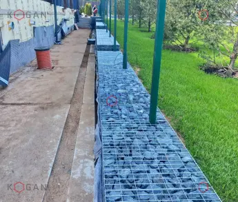 Всего в проекте применены 11 сварных габионов 0,4×0,4×2 метра (изготовлены из сварных панелей с ячейкой 50×100 мм и толщиной проволоки 4 мм). Конструкции созданы на нашем заводе, как и спиральные соединения, при помощи которых выполнялась сборка.