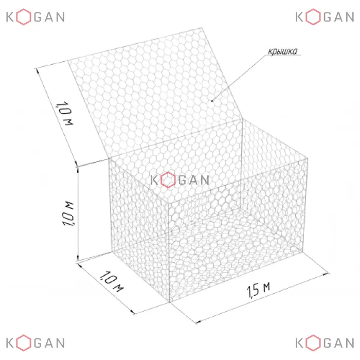 Габион коробчатый ГCИ-К-1,5х1,0х1,0-C60-2,4-Ц – прочная объемная конструкция из сетки двойного кручения для инженерной защиты территорий, изготовленная в соответствии с ГОСТ Р 52132-2003 и ТУ 25.99.13-001-52757089-2018. Габаритные размеры конструкции составляют 1,5х1,0х1,0 м с шестиугольными ячейками сетки 60х80 (С60).