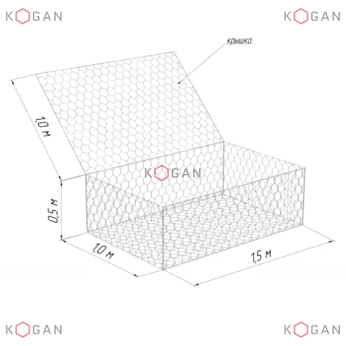 | Комплектация | Габион в виде развертки, крепления |