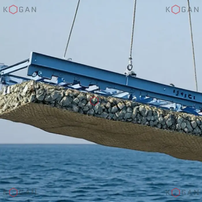 Габионы для подводной укладки представляют собой комплект габионного изделия и закладной детали, служат для формирования заполненного камнем габиона, с последующим его погружением в воду на дно с помощью специальной траверсы. Габионы для подводной укладки с закладными деталями получили широкое распространение для работ связанных с дноукреплением, формировании габионных якорей подводных трубопроводов, защиты около причальных сооружений, а также для укладки в русла рек на большую глубину для защиты от размыва дна и прибрежной зоны.